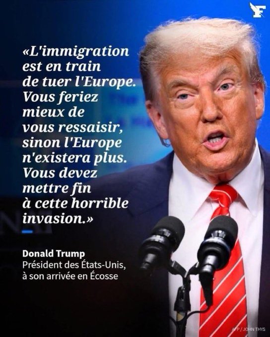 Donald Trump : ยซย L’immigration est en train de tuer l’Europe. Vous feriez mieux de vous ressaisir, sinon l’Europe n’existera plus. Vous devez mettre fin ร cette horrible invasion.ยป